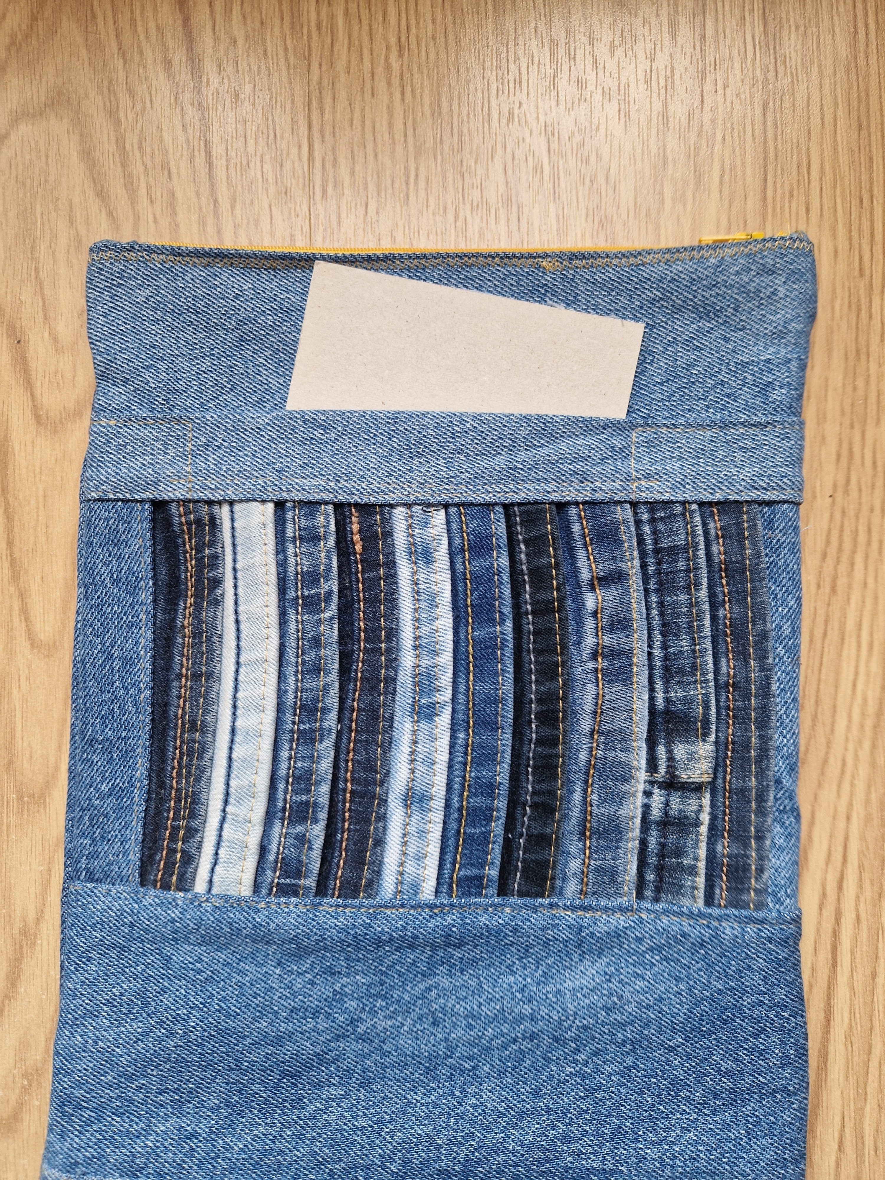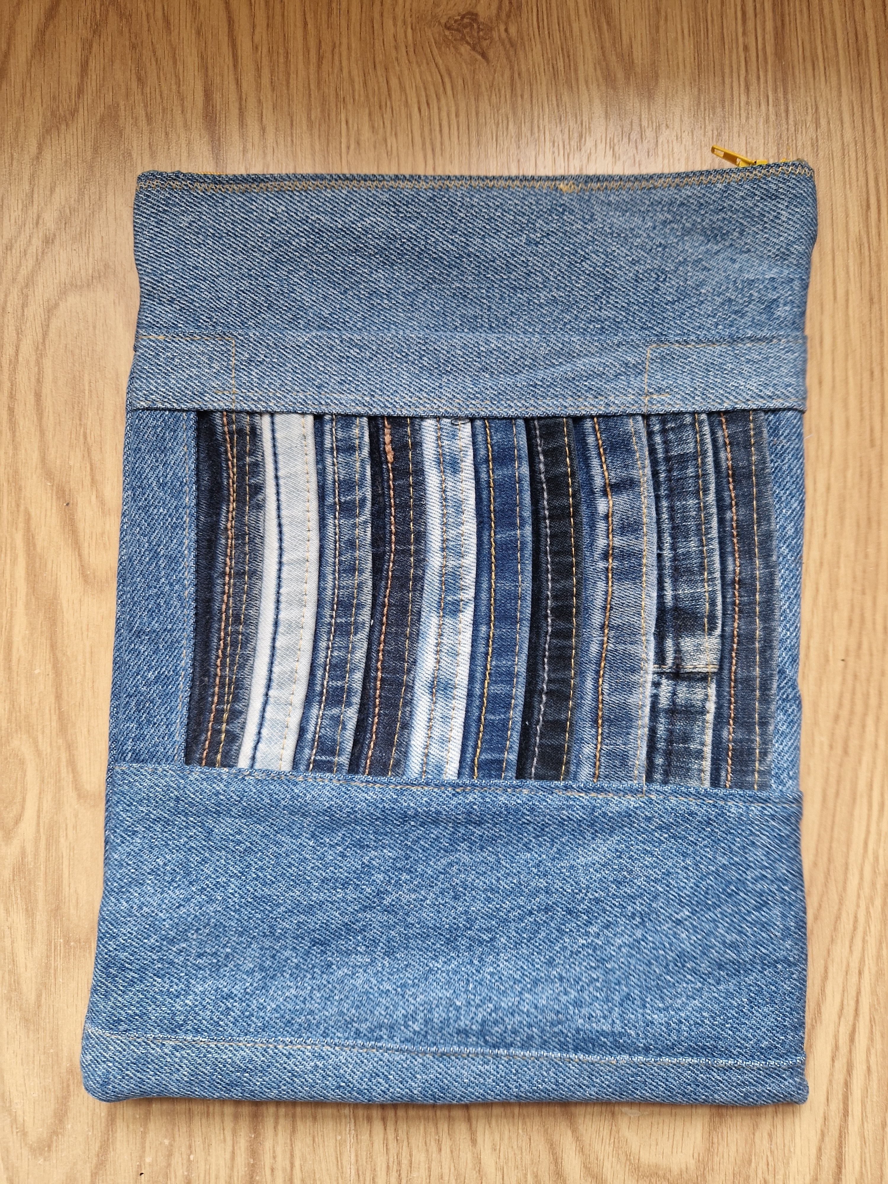 Book Sleeve / E-reader Sleeve/ Tablet Hoes met ritssluitng gemaakt van verschillende soorten jeans.