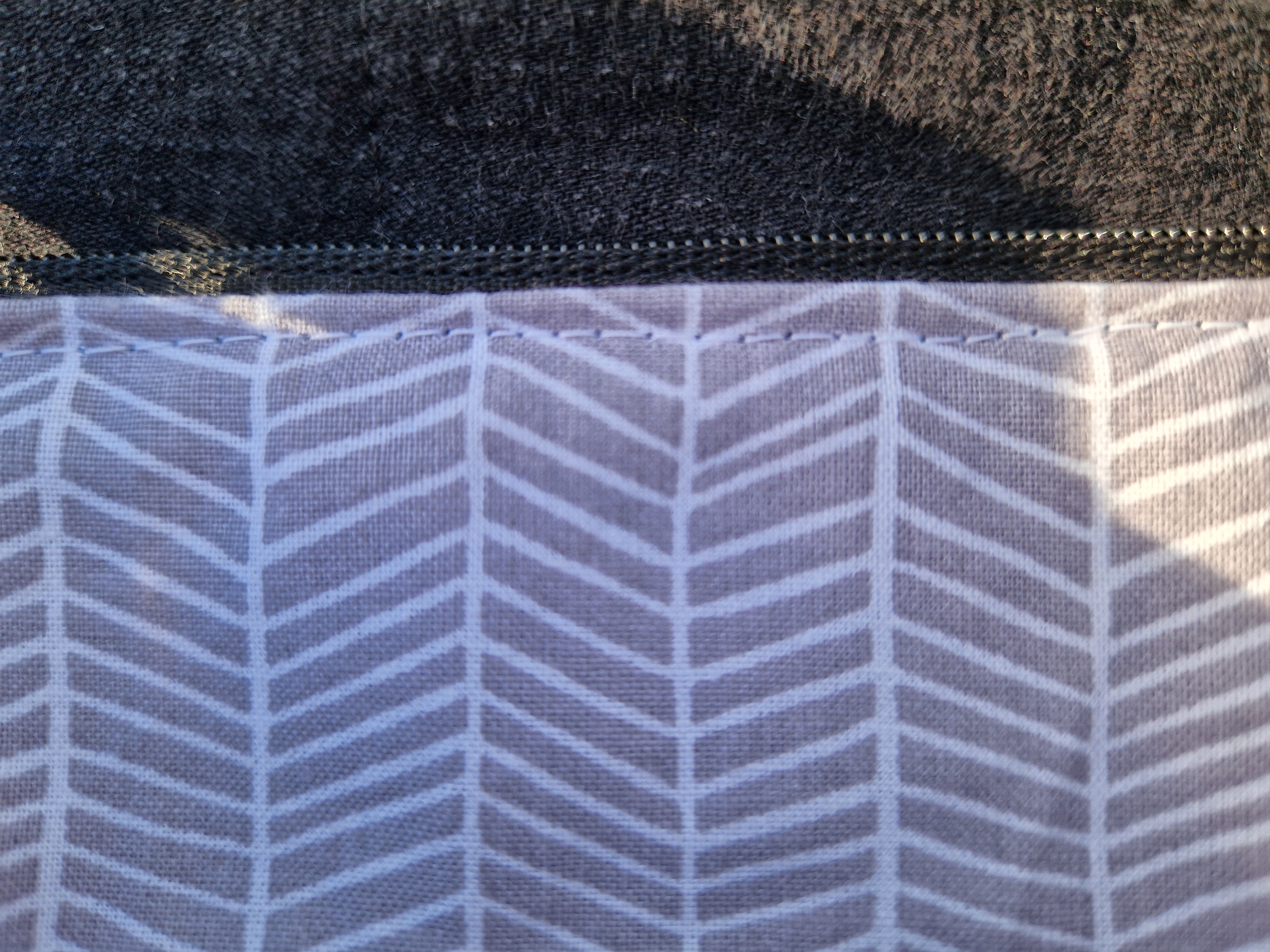 Binnenin een klein vakje en een licht grijze voering met witte visgraat. Deze tas heeft een ritssluiting en een lange schouderband.