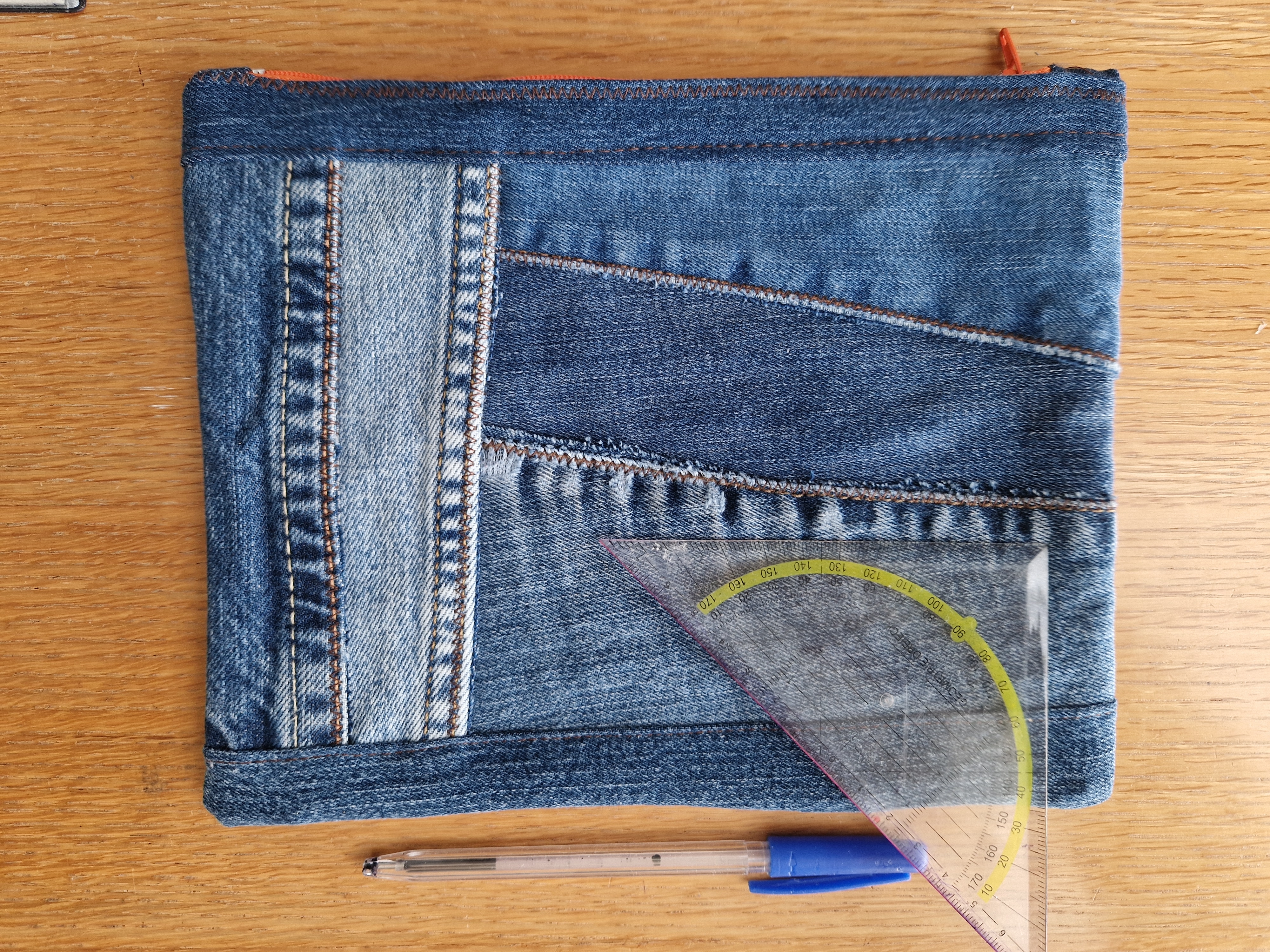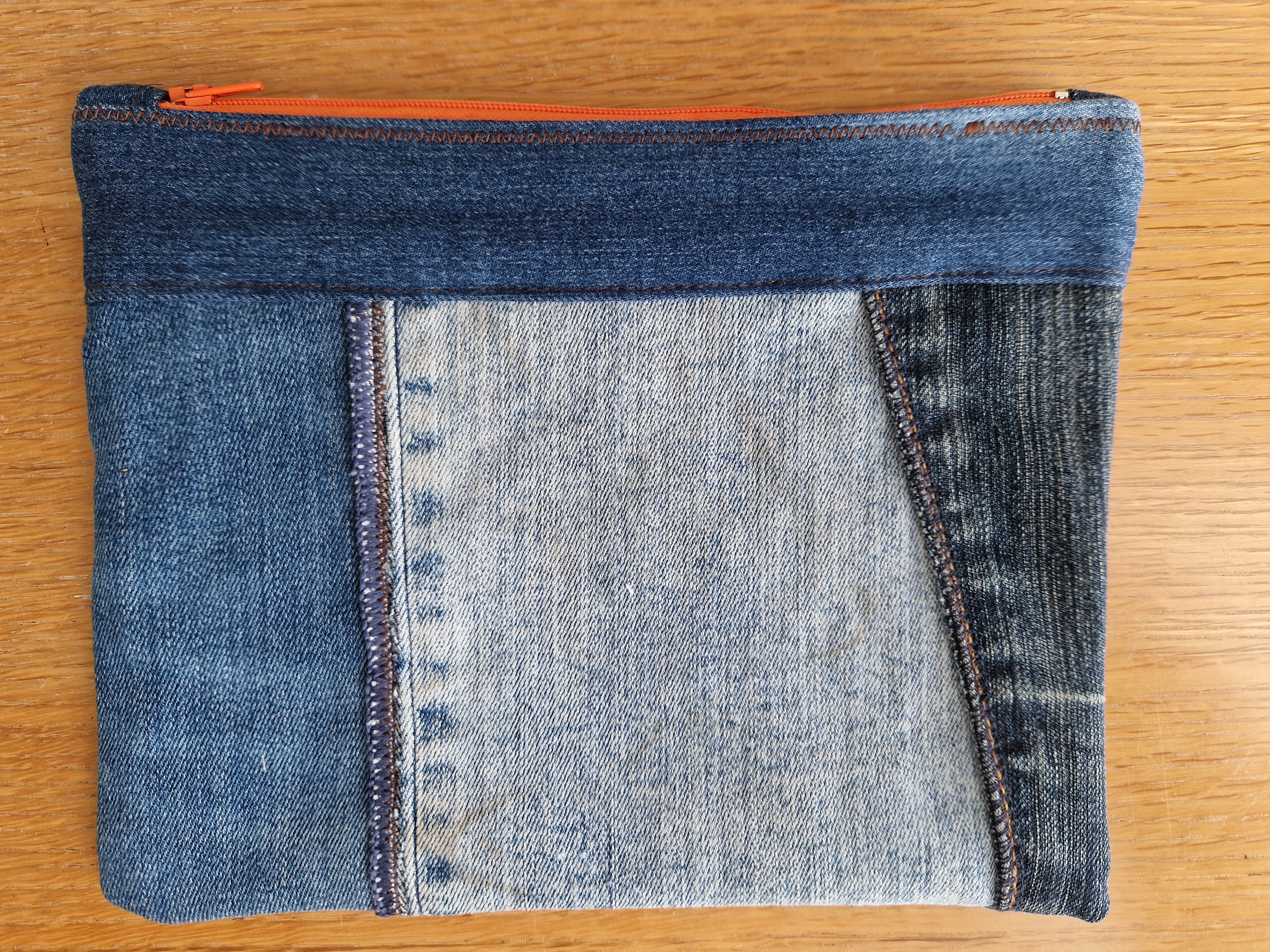 Groot Etui gemaakt van verschillende soorten denim.