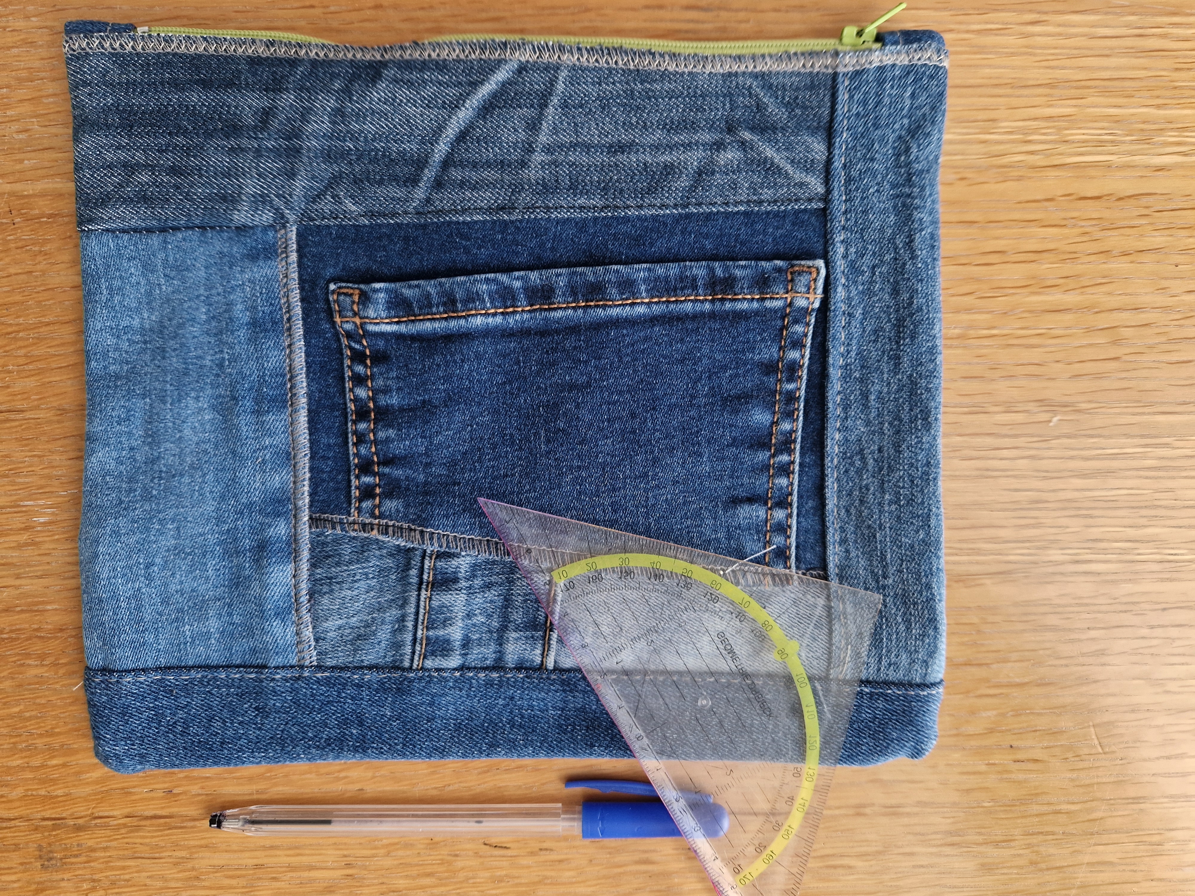 Groot Etui gemaakt van verschillende soorten denim.